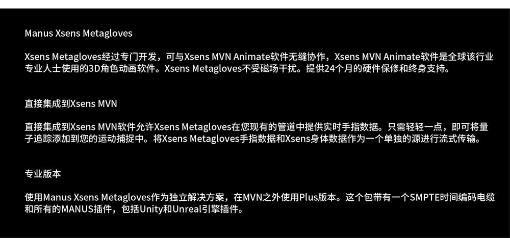 Manus Xsens Metagloves虚拟现实手套